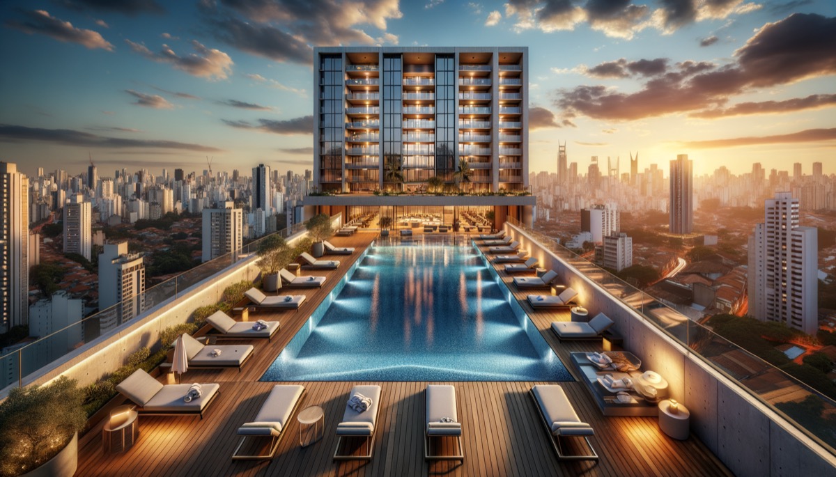 Apartamentos de alto padrão no coração do Itaim Bibi. Torres gêmeas com 20 andares, vista para o skyline paulistano.